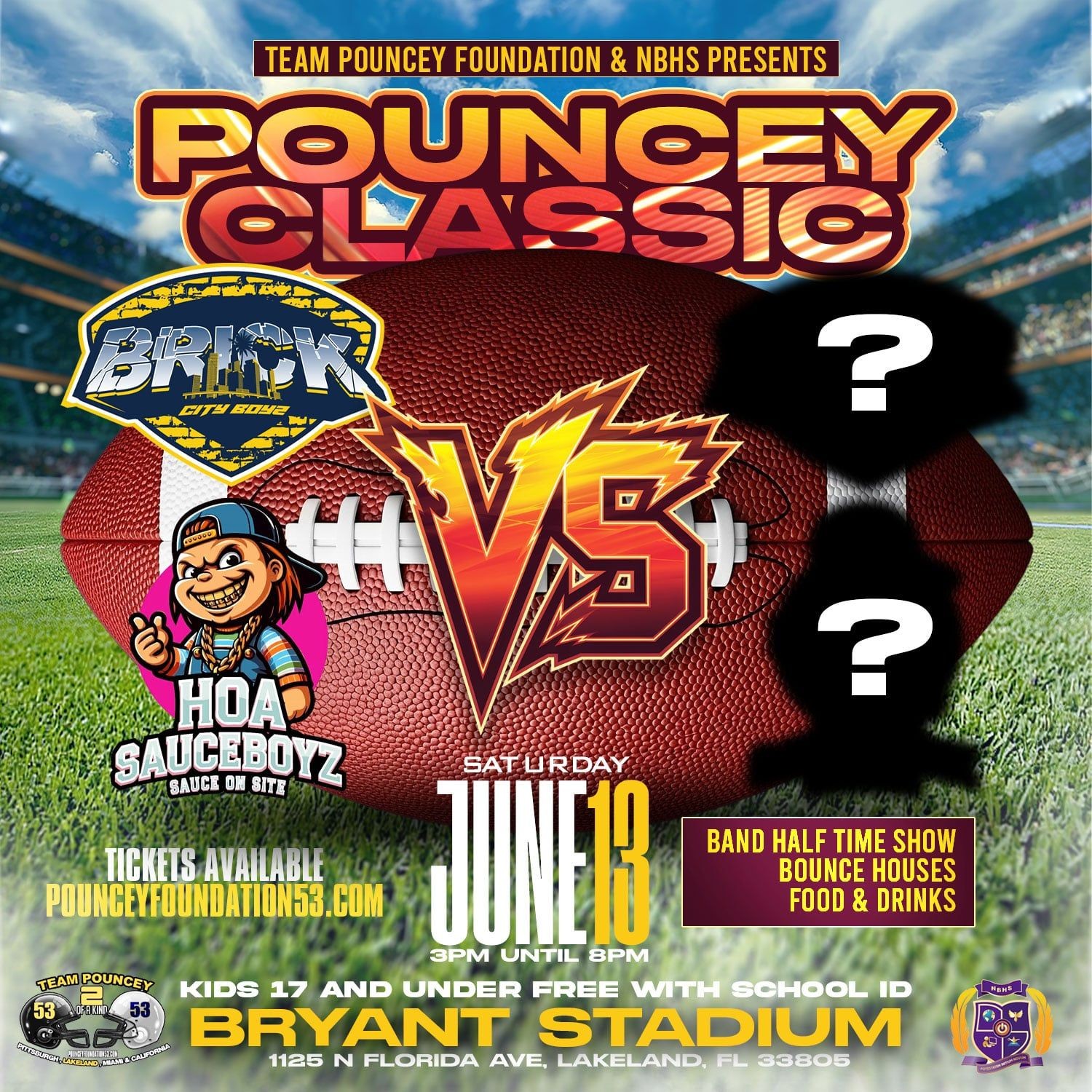 Join us for an unforgettable day filled with great food, music, and family-friendly fun. The event will feature a Kidz Zone, a halftime show with live bands and cheerleaders, and exciting matchups between four elite youth football teams competing for the title of Pouncey Classic 2026 Champion.